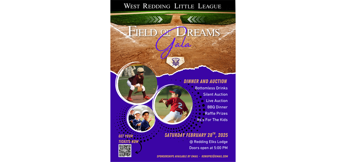 The Field of Dreams Gala is the First annual Fundraising Dinner held at the Elks Lodge on 2/28/26. Come enjoy BBQ Dinner, Live Auction, Silent Auction, Raffles and Unlimited Drinks on us. Grab you Dinner Tickets Now.
